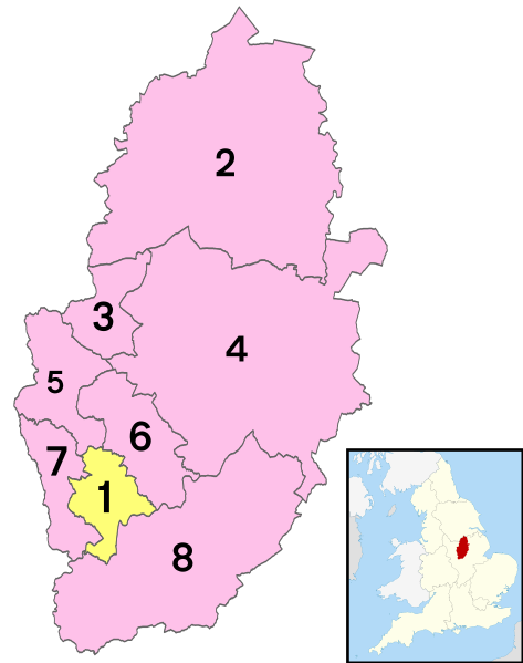 Nottinghamshire (abbreviated Notts) is a county in the East Midlands region of England, bordering South Yorkshire to the north-west, Lincolnshire to the east, Leicestershire to the south, and Derbyshire to the west. The traditional county town is Nottingham, though the county council is based at County Hall in West Bridgford in the borough of Rushcliffe, at a site facing Nottingham over the River Trent.
