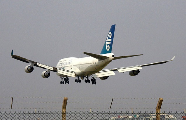 Boeing 747 of Air New Zealand on the approach to London (Heathrow) Airport (UK). Taken by Adrian Pingstone in August 2003.